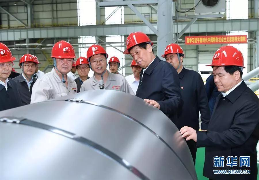 6月2日至5日,中共中央政治局常委、全国人大常委会委员长栗战书在内蒙古自治区检查大气污染防治法实施情况。这是6月3日,栗战书在包钢集团了解生产线技术升级改造情况。新华社记者饶爱民摄