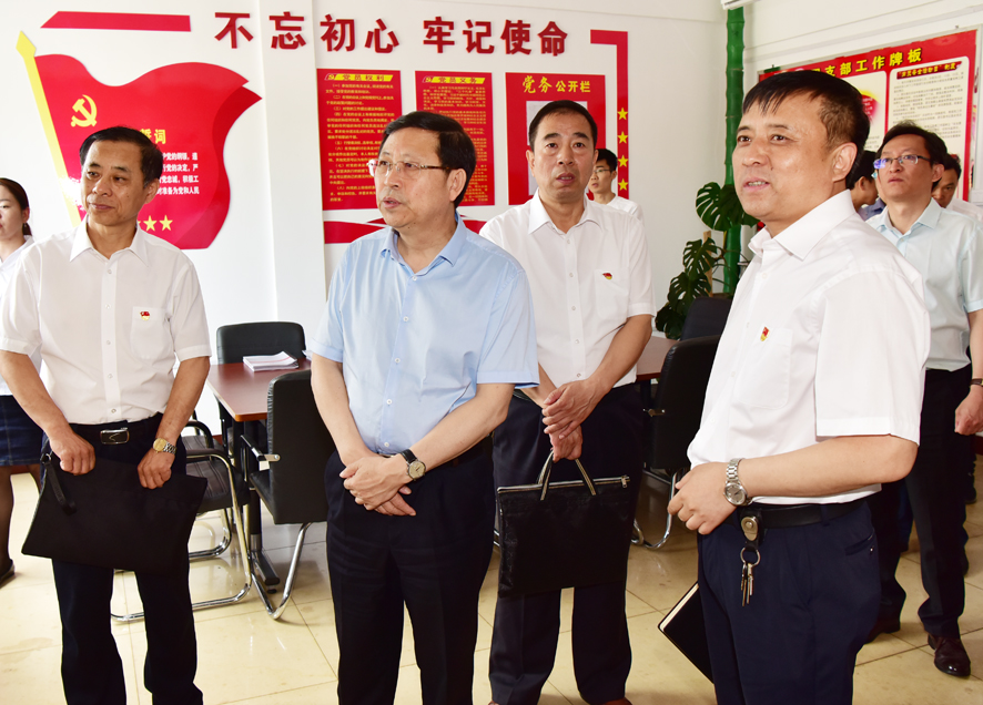 省国资委党委副书记侯纯禄(左二)在龙湖矿专题调研基层党支部标准化建设工作和“不忘初心、牢记使命”主题教育。袁小松摄