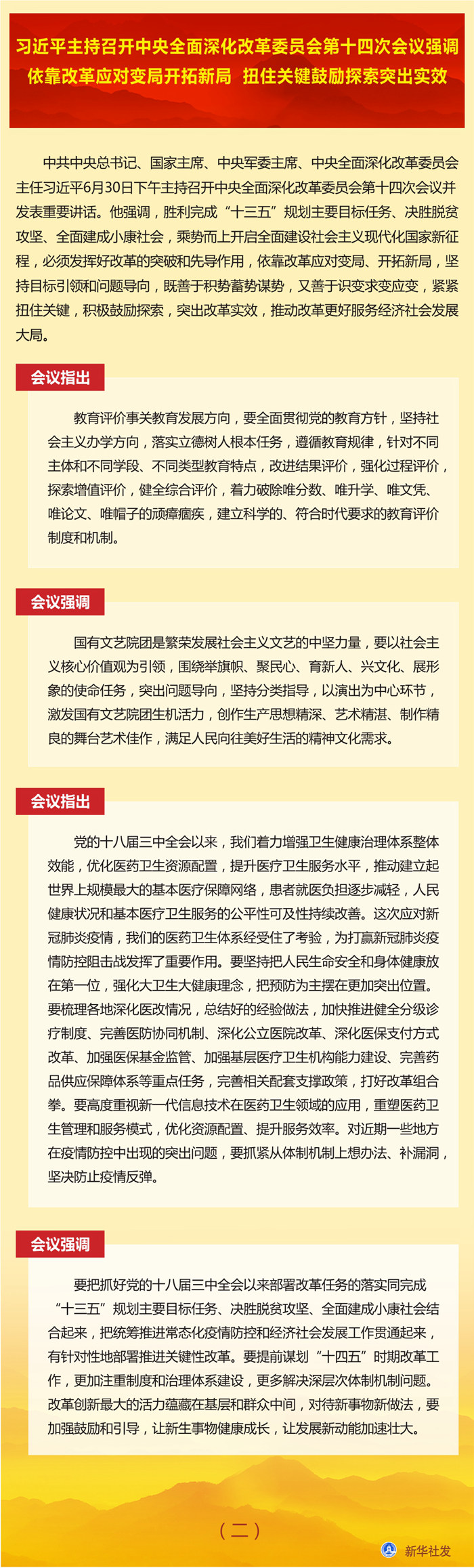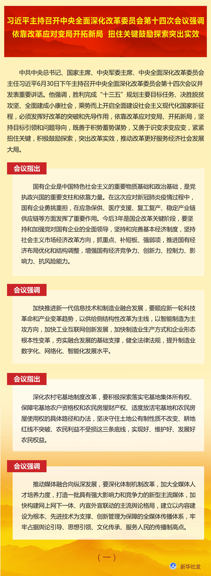 习近平主持召开中央全面深化改革委员会第十四次会议