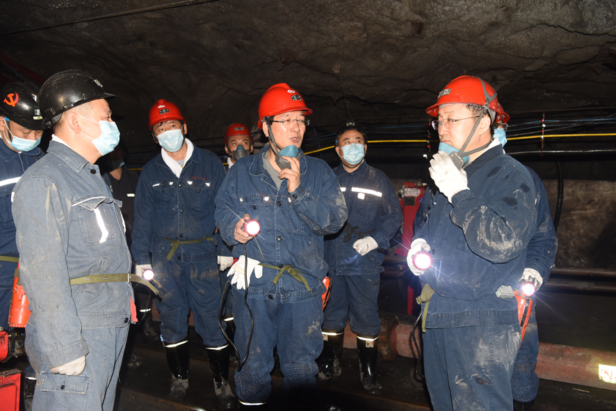 公司党委副书记、副董事长、总经理刘金奇深入龙湖矿检查矿井充填开采工作。孙国祥摄
