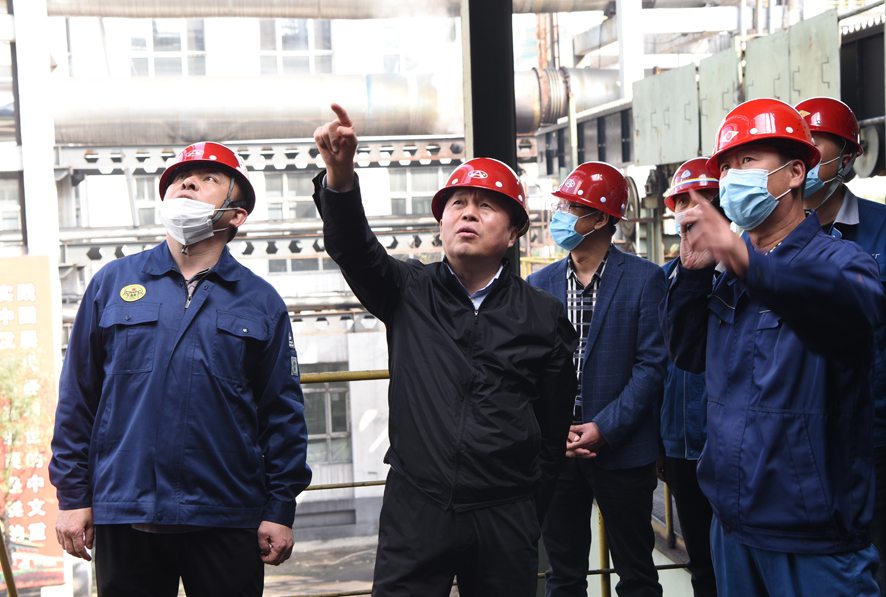 公司党委书记、董事长张长山(左二)在煤气厂调研。刘广军摄