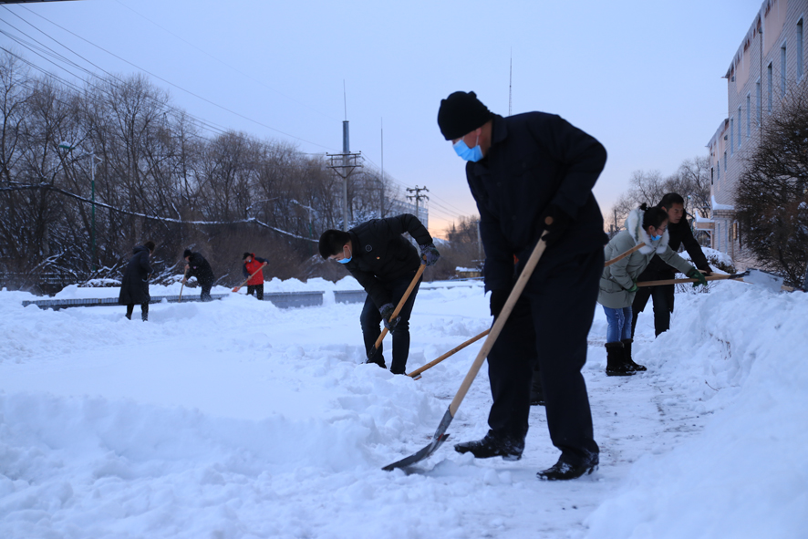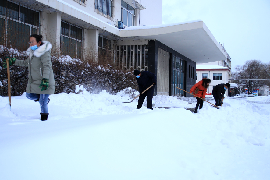 近日,我市骤降暴雪,桃选厂组织职工及时清理积雪,保证生产生活正常进行。