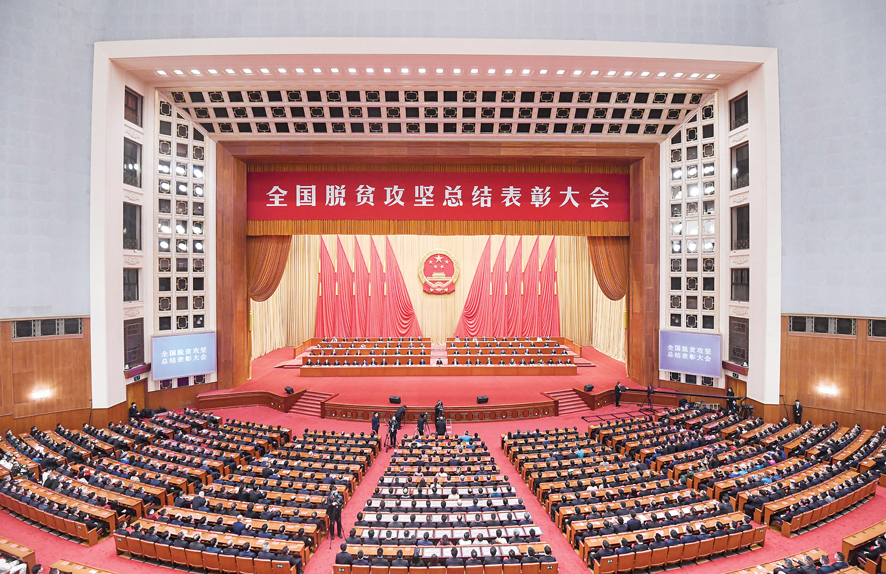 2月25日,全国脱贫攻坚总结表彰大会在北京人民大会堂隆重举行。中共中央总书记、国家主席、中央军委主席习近平在大会上发表重要讲话。 新华社记者 燕雁摄