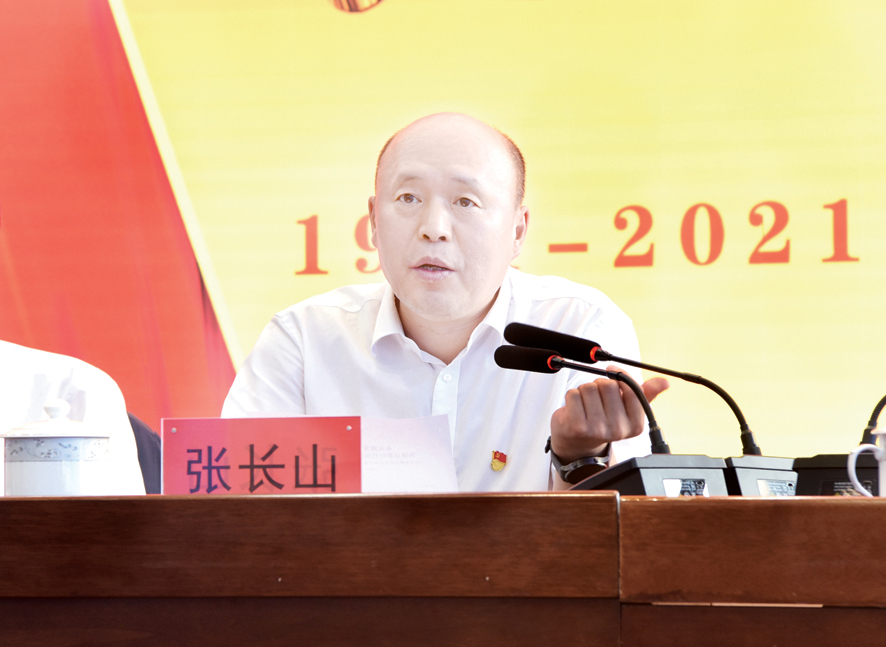张长山强调,在庆祝建党100周年的喜庆时刻,我们抚今追昔,心潮澎湃,勿忘昨天的苦难辉煌,无愧今天的责任担当,不负明天的梦想追求,让我们高举习近平新时代中国特色社会主义思想伟大旗帜,继承发扬党的光荣传统和优良作风,开拓创新、奋发进取,加快建设新时代现代化新七煤,为实现中华民族伟大复兴的中国梦做出新的更大贡献。