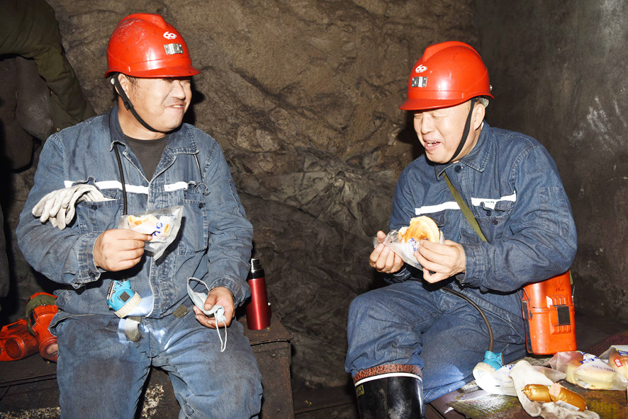 19时,张长山与随行的新铁矿领导在井下吃班中餐时共同探讨了降尘措施,强调要把降尘工作作为重中之重,要从根源治理上想办法,尤其要充分认识到煤层注水既能降尘又是治理瓦斯的有效手段,认真研究煤层注水方式方法,严格落实降尘措施,为职工创造良好的生产环境。