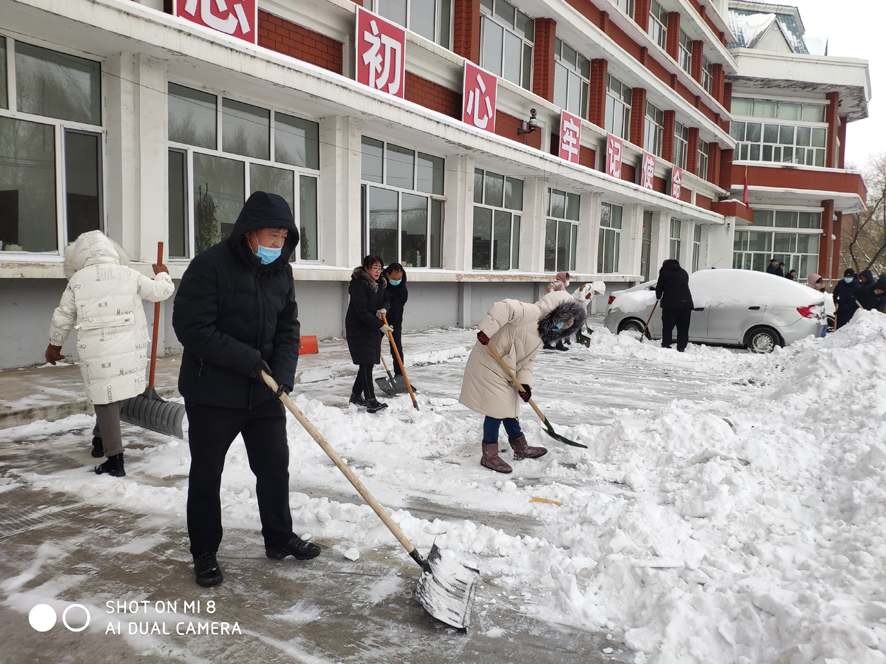 土建工程处以雪为令,全面动员、全员参战,组织职工顶风冒雪、战严寒,克服了雪量大、人员少、缺少机械装备等困难,用铁锹、扫帚把广场、人行道等处打扫得干干净净,确保了道路畅通、职工出行。