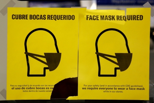 这是1月11日在美国路易斯安那州新奥尔良市一家商店拍摄的提醒人们佩戴口罩的告示。(新华社发,魏兰摄)