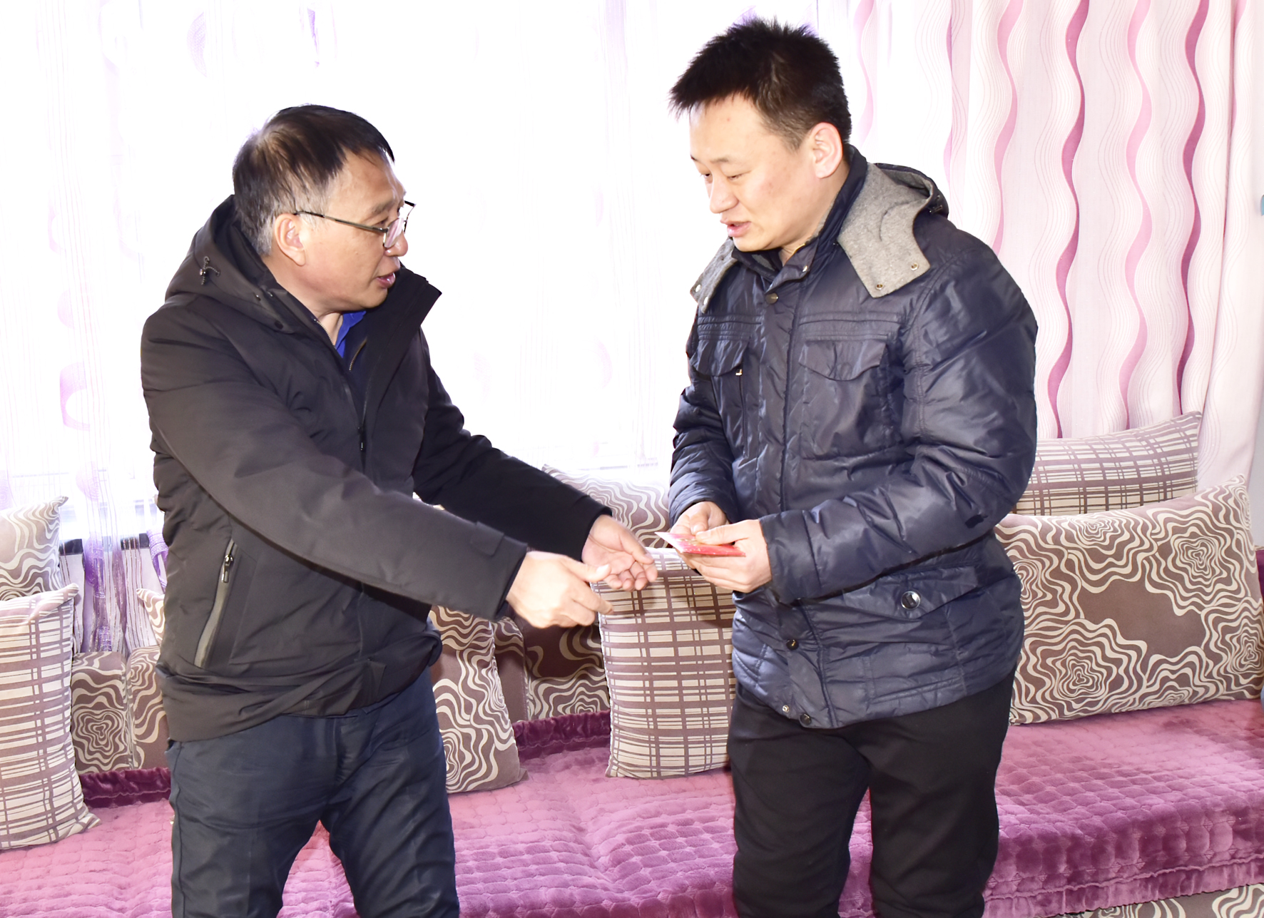 在隋国忠家中,梁德与隋国忠互致问候。梁德说:“企业发展需要工匠精神,你是七台河矿业公司的重点培养对象,要继续发扬工匠精神,深入开展课题攻关、技术攻关,为企业发展做出新的更大的贡献,同时也祝你在新的一年里取得更好的成绩。”隋国忠备受鼓舞,表示一定不辜负组织的期望和企业的关心,今后要继续努力、刻苦钻研,为建设新时代现代化新龙煤做贡献。(摄影:袁晓松)