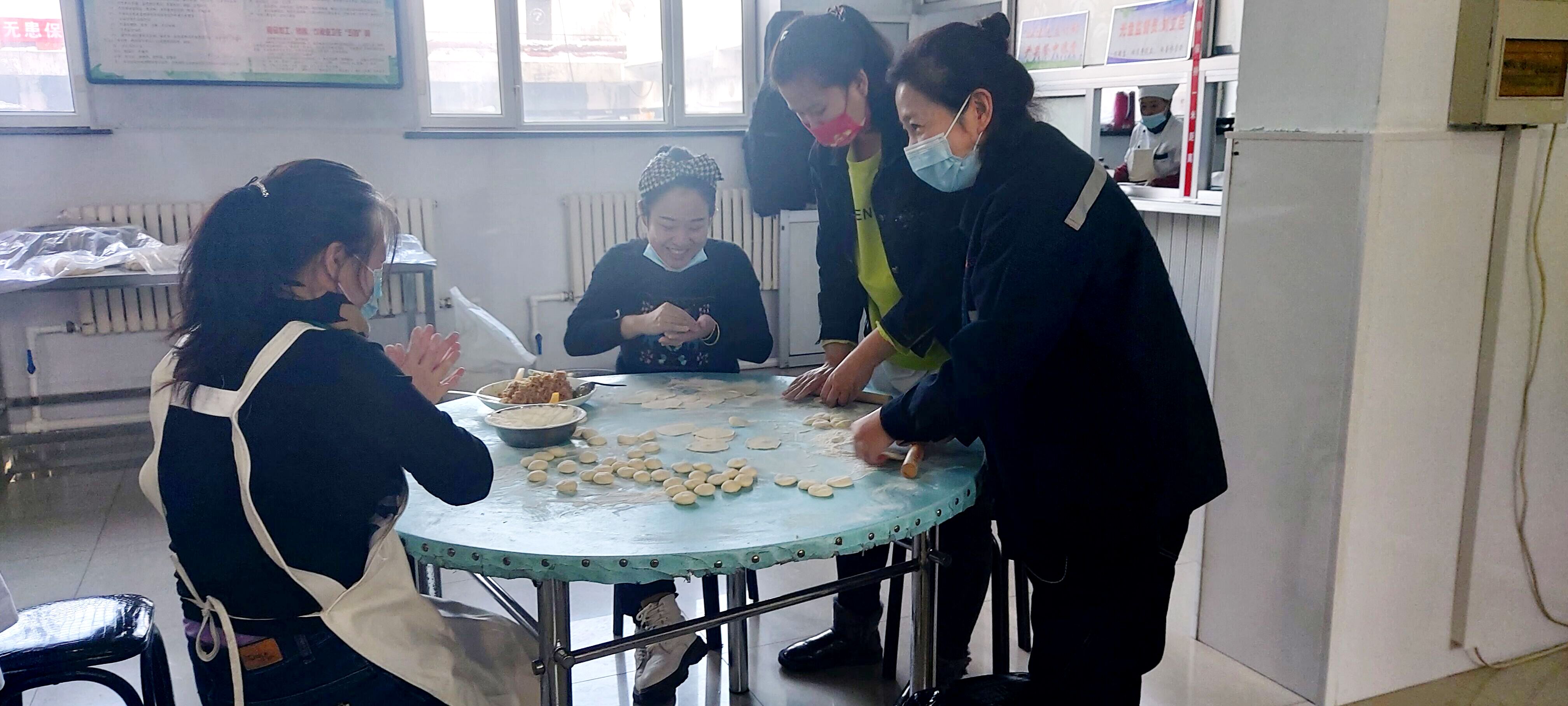 参加活动的供电部试验、变电、外线职工和供应科机关党员干部、职工来到食堂一起做准备工作,洗菜、切菜、调料、调馅、包饺子……每个人分工明确,有和面的,有制作馅料的,有制作调味蘸料的……他们齐心协力,纷纷亮绝活、显身手。男同志包的饺子用料十足,个个都是大圆肚子;女同志包的饺子大小均匀、精致可爱,新手虚心向老师傅请教,一会儿功夫就掌握了要领。他们有说有笑,相互切磋包饺子技巧,对比着饺子的形状,现场热闹非凡。一个个饺子从他们的巧手中捏了出来,摆满了一桌,女同志也不忘相互拍照,展示自己的劳动成果,点赞同事的精湛手艺,整个食堂都回荡着欢声笑语……经过两个多小时的劳作,包好了数百斤饺子,他们将饺子分袋包装并在室外冻好后分给供电部春节值班人员及基层一线变电所人员,让春节值班人员及基层一线变电所人员在新春佳节值守岗位吃上象征幸福团圆的饺子,把祝福送到一线职工的心坎上。