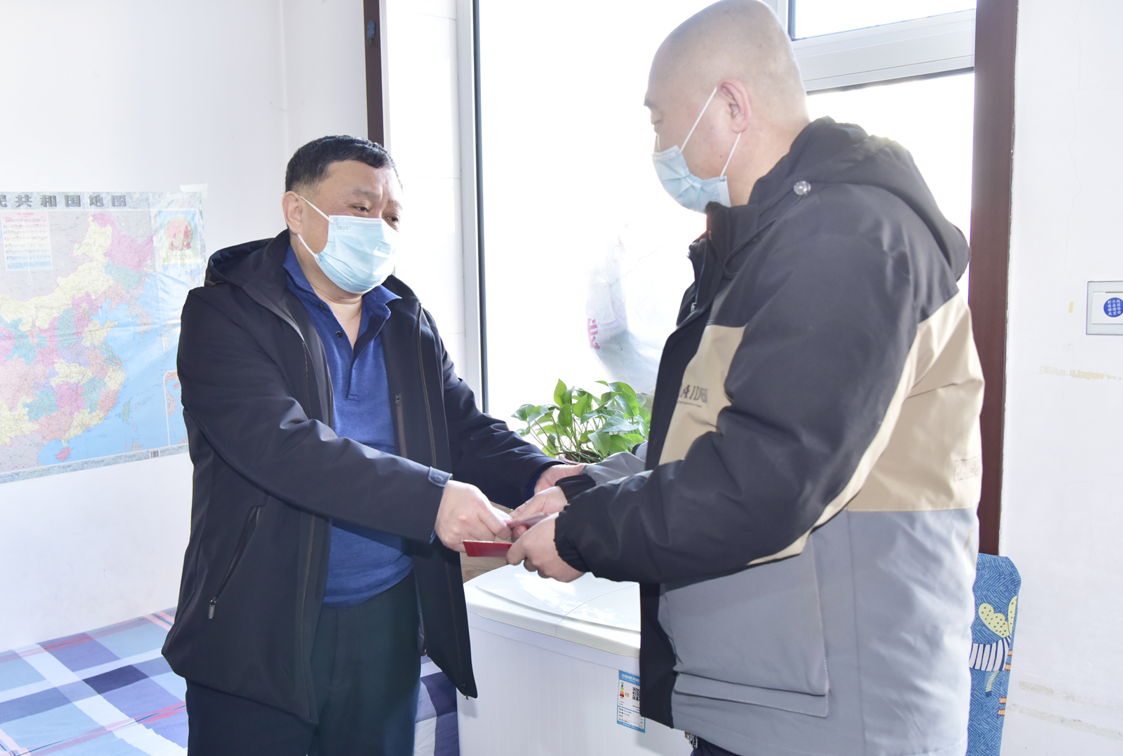 在贾文刚、马艳伟、胡显义家中,王生晖向他们致以节日的问候与深情的祝福,祝他们身体安康、万事如意,让他们在寒冬中感受到公司党委、公司的温暖。贾文刚、马艳伟、胡显义表示要坚定信心、克服困难,提高自身安全意识,立足岗位干好本职工作,为推动企业高质量发展再做新贡献。