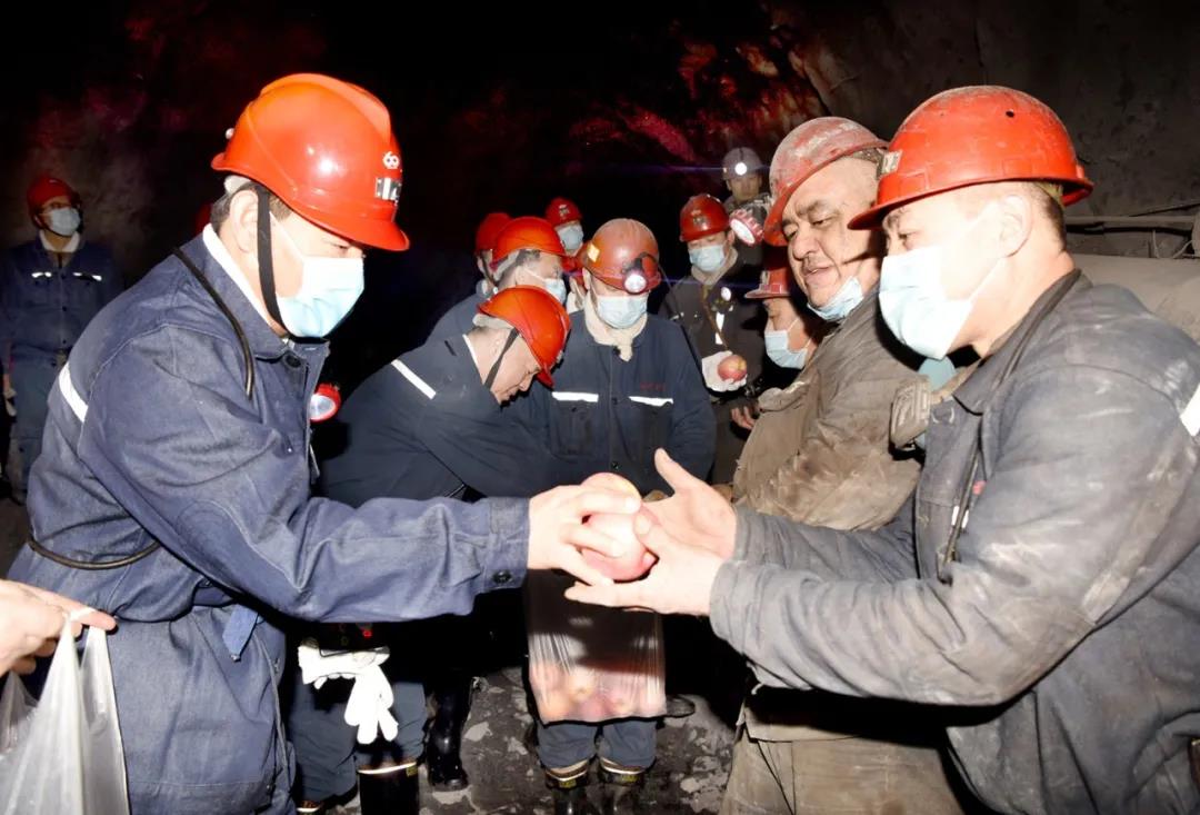 王佳喜检查了新建矿7033掘进工作面的现场管理、灾害治理、安全生产标准化建设等工作,详细了解了新建矿一线职工出勤、工资收入等情况,向7033掘进队队长韩锦章仔细询问了7033掘进工作面的安全管理重点和使用皮带连续化运输的优点,代表集团公司党委、集团公司向新建矿节日期间奋战在生产一线的广大职工致以节日的慰问,为7033掘进队职工送去了象征平安幸福的苹果。王佳喜说:“当前正值新春佳节,我代表集团公司党委、集团公司来看望你们,给你们拜年了,祝你们新春快乐、身体健康。”王佳喜叮嘱新建矿广大职工要迅速从节日氛围中走出来,坚决收好心,快速进入工作状态,全力抓好安全生产,保持正常的生产秩序。