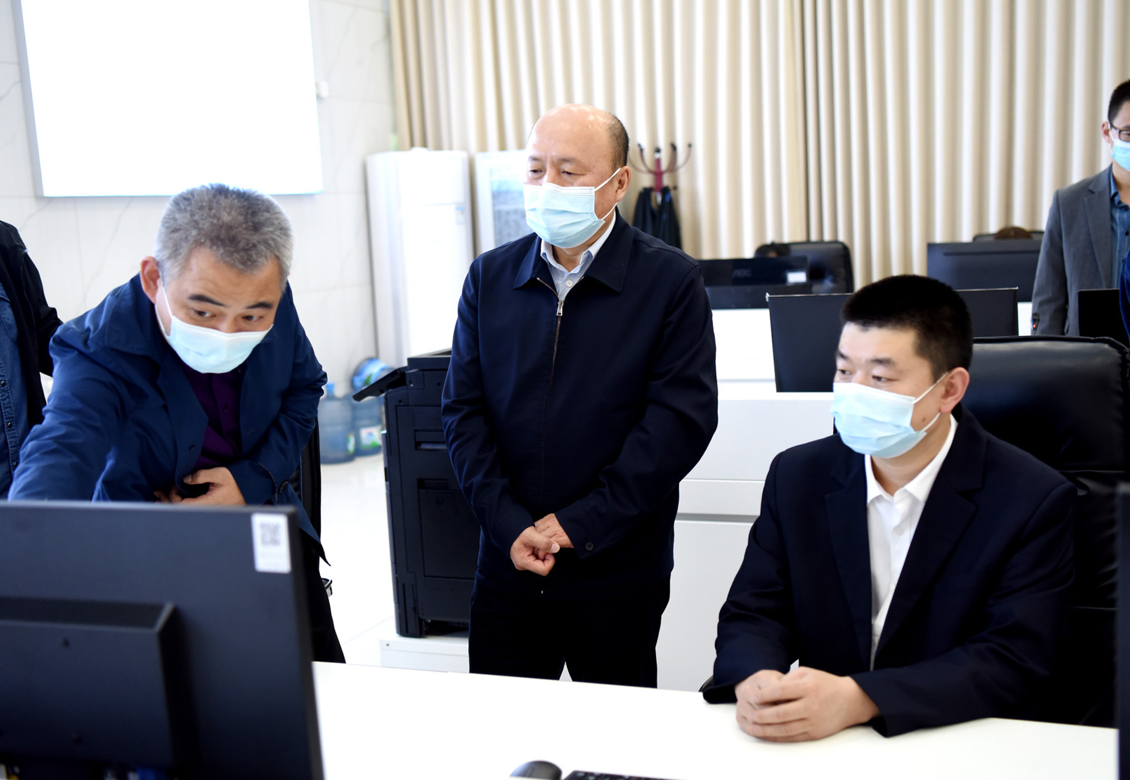 在新兴矿智能化安全生产调度指挥中心,张长山认真听取了新兴矿智能化安全生产调度指挥中心建设整体情况汇报,查看了新兴矿矿长入井带班轨迹后强调,要进一步完善智能化安全生产调度指挥中心功能,坚持科学指挥、科学调度,充分发挥智能化安全生产调度指挥中心在安全生产中的作用,新兴矿要把实现井下无人值守列为重点科技项目,成立专班,坚持定期推进,全力打造现代化智慧矿山,建成公司井下无人值守的示范矿井。(摄影:孙国祥)