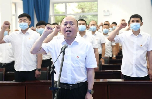 6月29日,公司党委书记、董事长张长山为新建矿职工上安全大课、深入井下带班,带领新建矿矿井两级安全生产“第一责任人”进行安全宣誓。