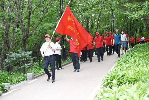 公司离退休干部处把此次活动选择在风景秀美的桃山公园,参加活动的公司机关退休党员干部年龄最大的85岁,最小的也已65岁,他们身着整齐的服装,胸前佩戴党员徽章,齐声高唱《社会主义好》《打靶归来》《没有共产党就没有新中国》三首歌曲,排着整齐的队列踏上了徒步的征程,雄赳赳奔向目的地。在徒步过程中,公司机关退休党员干部步履矫健、活力十足,一路欢声笑语,尽管满头大汗,但仍神清气爽,在徒步中愉悦身心、战胜困难,体验成功的喜悦,感受生活在七煤大家庭的幸福快乐。
