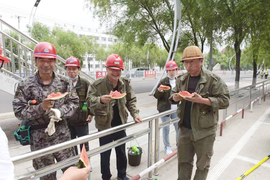 “大家辛苦了!一定要注意补水、劳逸结合,做好防暑降温工作,确保身心健康……”在慰问现场,电力部工会人员对一线干部职工不畏酷暑、勇战高温、坚守岗位表示诚挚的慰问和衷心的感谢,为施工人员送去了西瓜、矿泉水和饮料,叮嘱现场施工人员要合理安排生产,科学组织施工,把安全生产措施落实到位,预防高温中暑,切实做到生产、安全两不误,确保身体健康和生命安全。