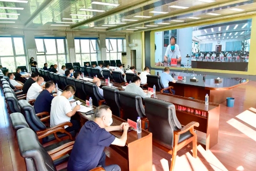 张标贤主持会议,并就贯彻落实会议精神要求增强全局意识,提高政治站位;精准管控,看住风险人;突出重点,守住企业门;强化措施,盯住重点场所;压实责任,落靠会议精神,确保落实落靠疫情防控措施。公司应对新冠肺炎疫情工作领导小组指挥部办公室汇报了公司近期疫情防控包保检查情况。公司应对新冠疫情督导组汇报了近期疫情防控督导工作开展情况。会议分别听取了新兴矿、新铁矿、向阳矿、七洗厂、销售公司运输部近期疫情防控工作汇报。公司应对新冠疫情四个督导组、十个包保组和公司机关相关部室负责人、公司应对新冠肺炎疫情工作指挥部办公室成员、各基层单位党委书记及分管疫情防控工作人员、基层部分党支部书记等分别在主会场、分会场参加了会议。(摄影:袁晓松)
