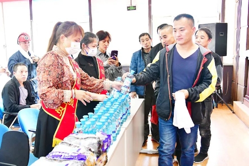 相聚的时光总是短暂,慰问演出结束后,新立矿矿工即将入井,矿区工会干部与职工家属安全协管员为他们送去了毛巾、手套、毡袜和洗洁精、洗手液等慰问品,并叮嘱他们要遵章守纪、保证安全,挣安全钱、幸福钱,经营好自己的小家。”