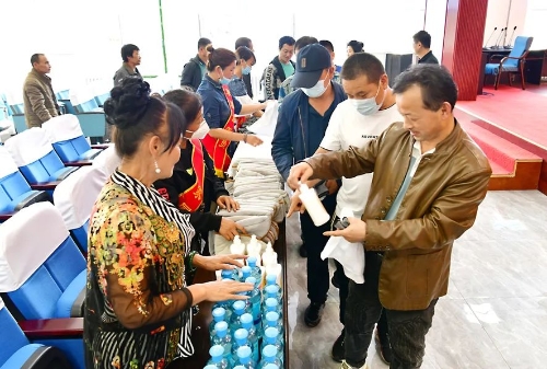 职工家属安全协管员为即将入井的建设矿矿工送去了毛巾、手套、毡袜、洗洁精、洗手液等慰问品,并再三叮嘱建设矿矿工:“安全无小事,安全关系你我他,希望你们遵章守纪,严格兑规作业,保证安全生产。”