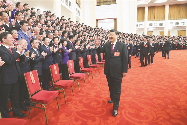 10月23日下午,中共中央总书记、国家主席、中央军委主席习近平等领导同志在北京人民大会堂亲切会见出席党的二十大代表、特邀代表和列席人员,并同大家合影留念。新华社记者 鞠鹏摄