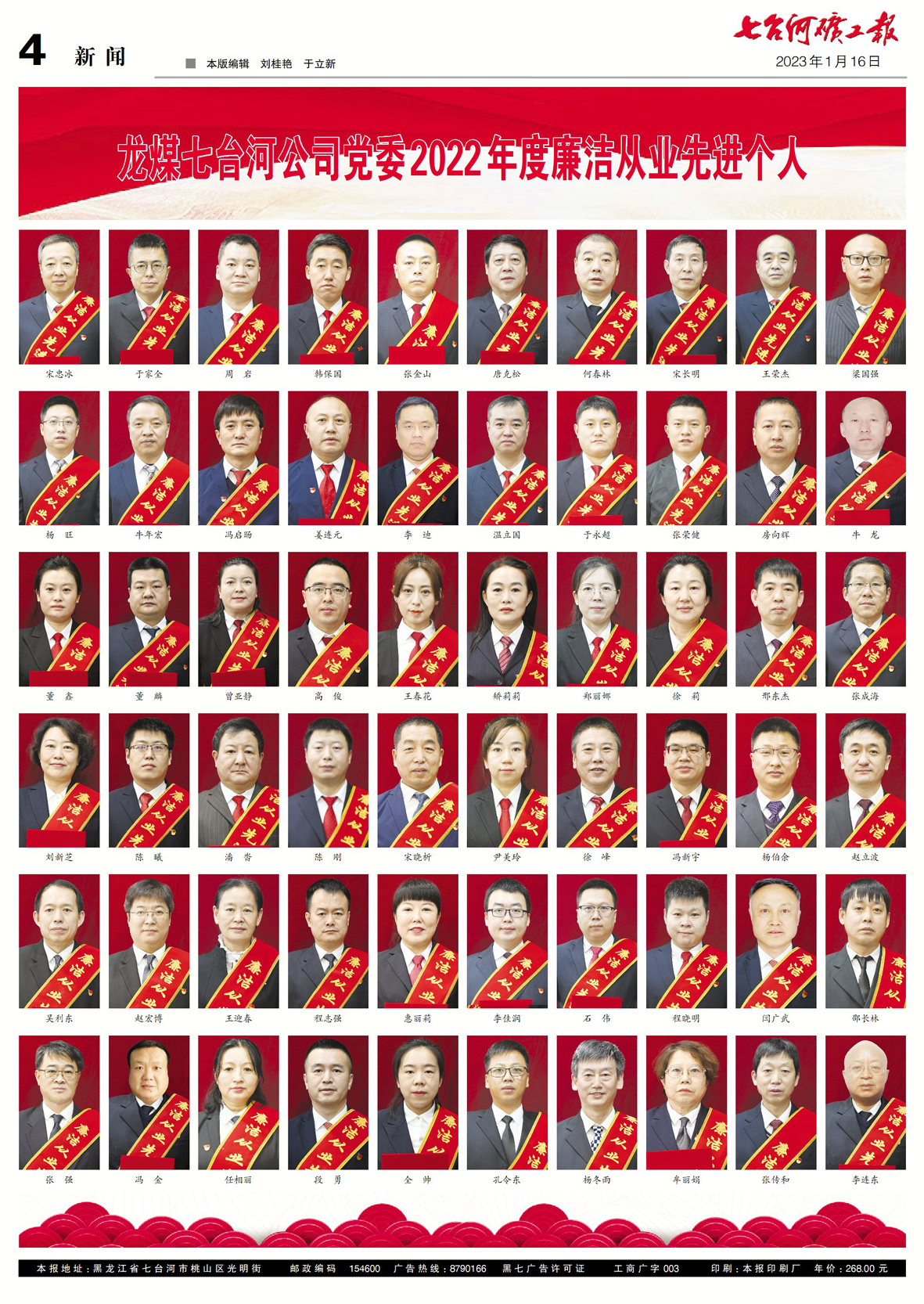 龙煤七台河公司党委2022年度廉洁从业先进个人