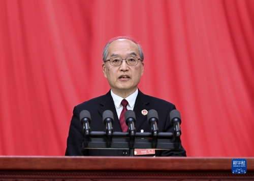 3月7日,十四届全国人大一次会议在北京人民大会堂举行第二次全体会议。最高人民法院院长周强作最高人民法院工作报告。新华社记者 李涛 摄
