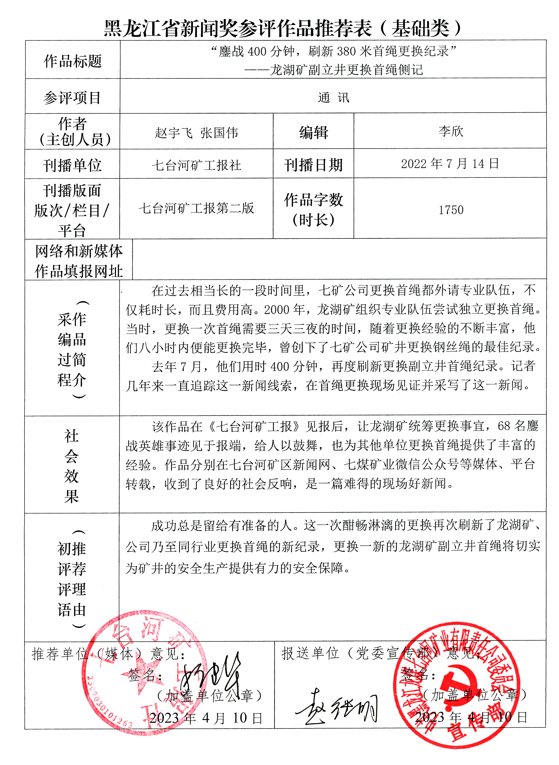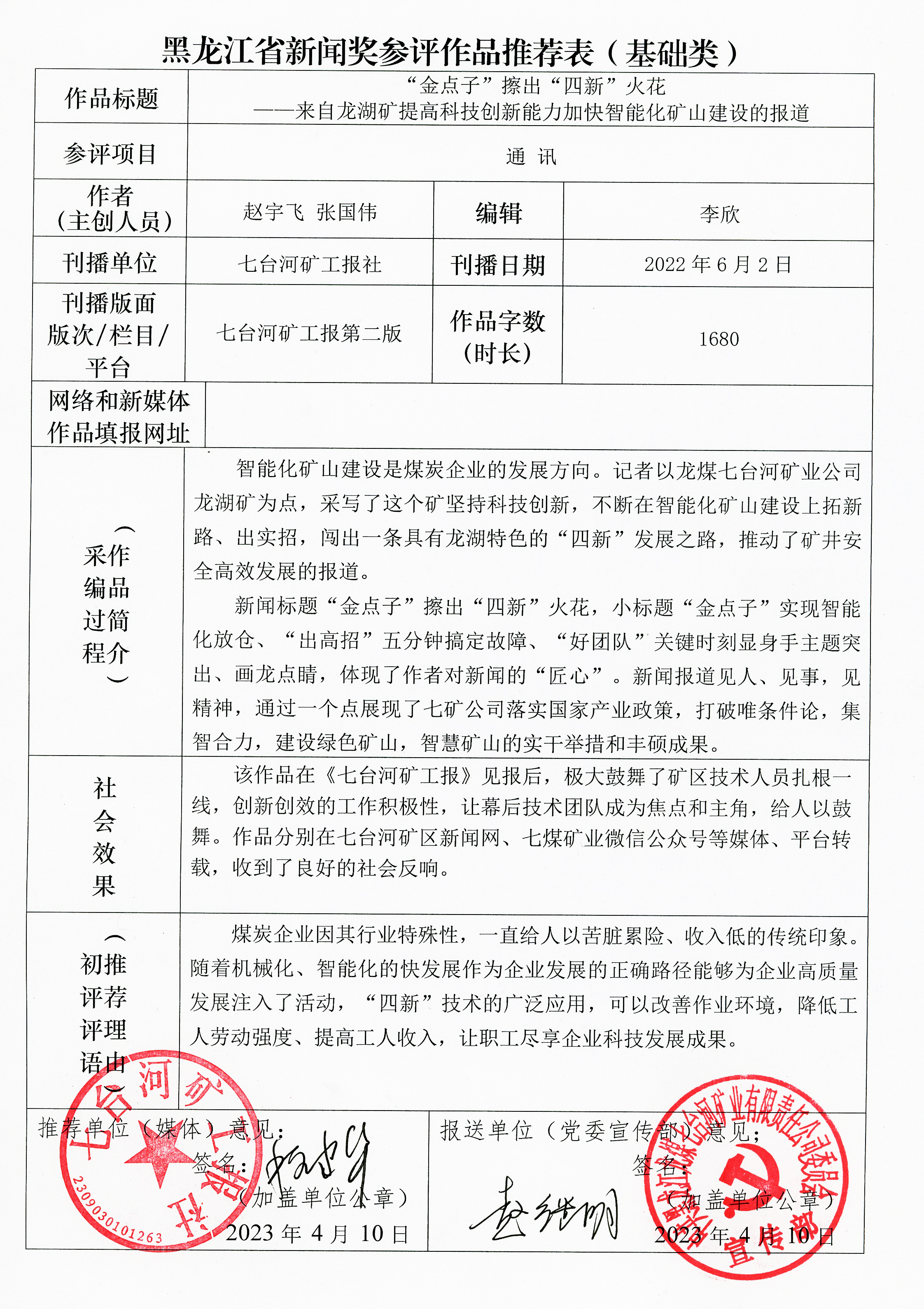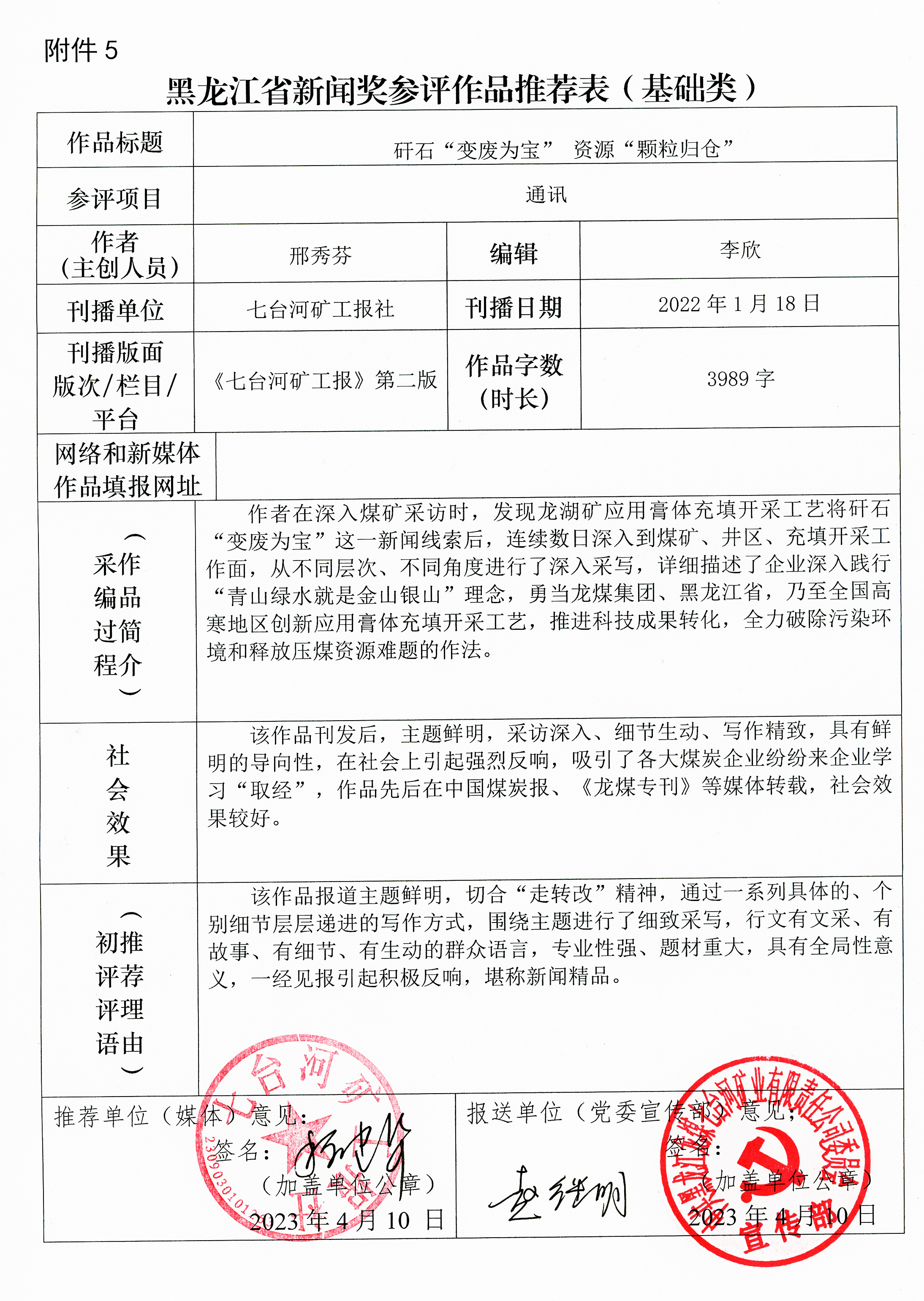 2022年度七台河市新闻奖暨黑龙江省新闻奖参评作品推荐(一)通讯类
