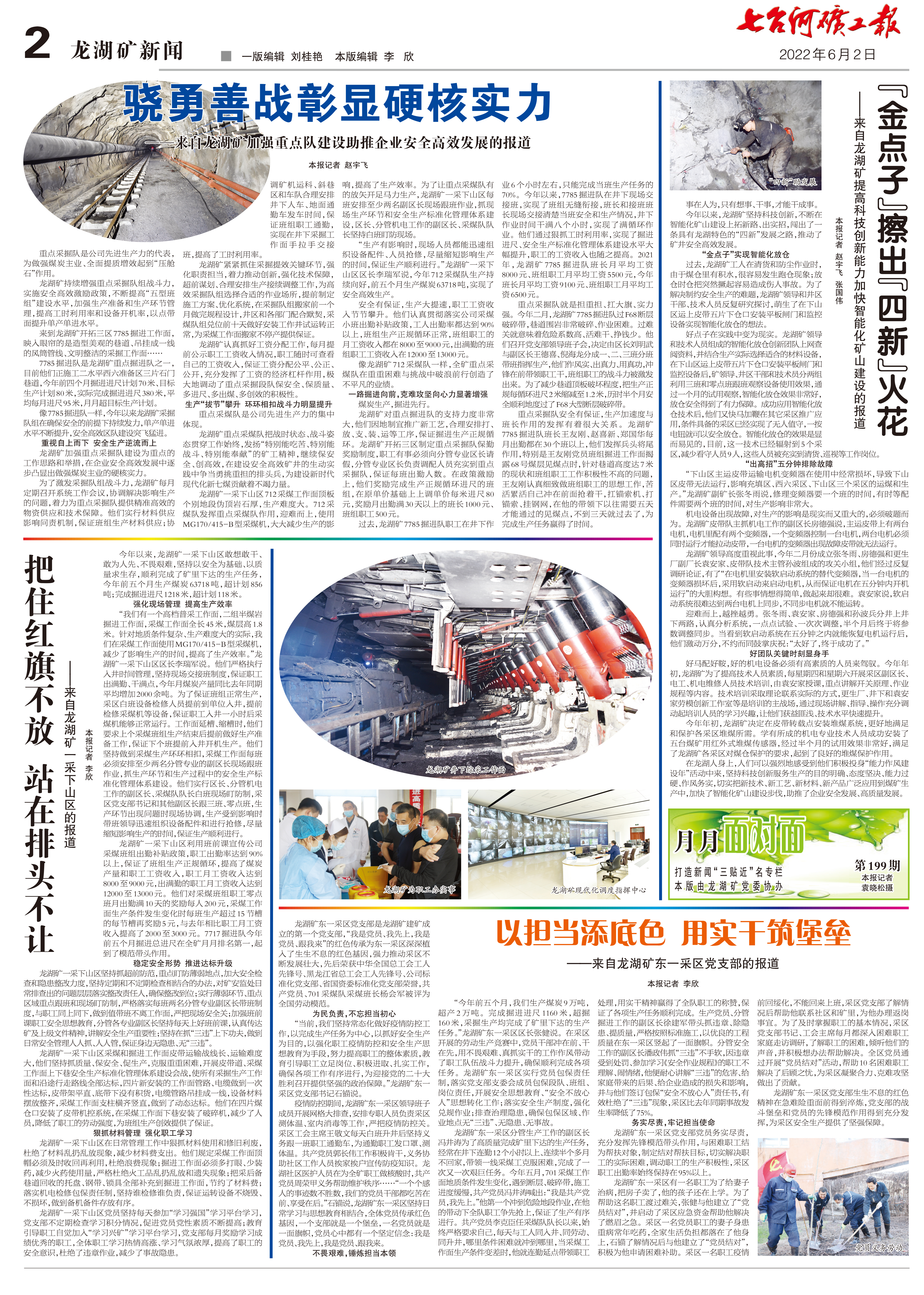 日期:2023-04-10 来源:七台河矿工报社 作者:01“金点子”擦出“四新”火花——来自龙湖矿提高科技创新能力加快智能化矿山建设的报道