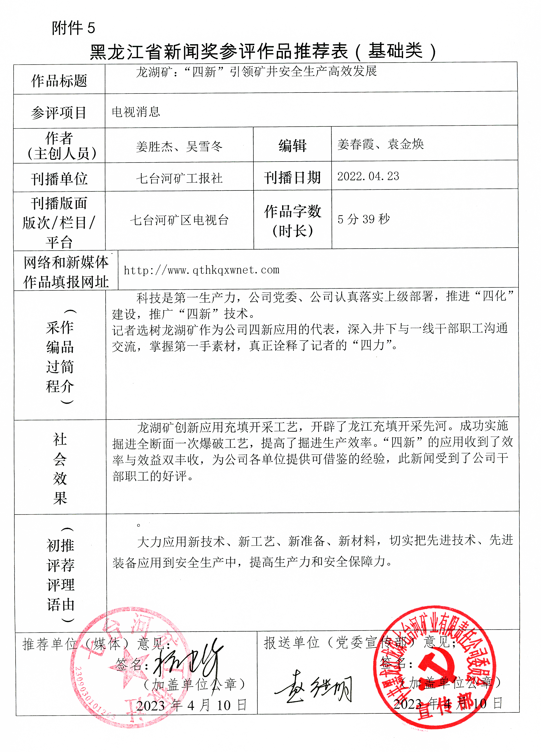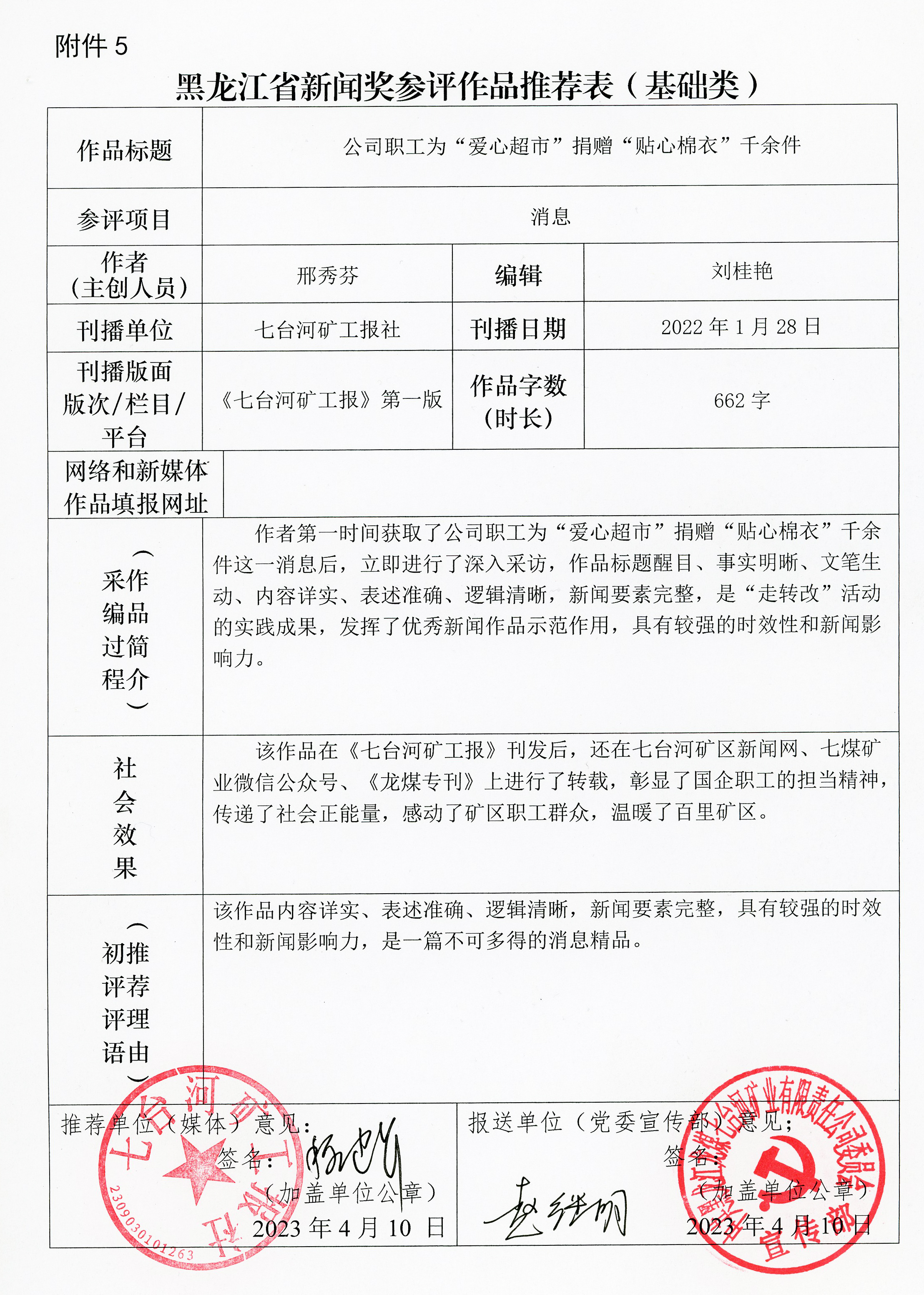 2022年度七台河市新闻奖暨黑龙江省新闻奖参评作品推荐(二)消息类