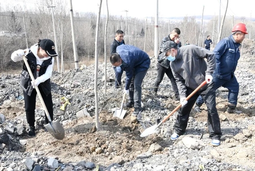 人勤春来早,植绿正当时。4月14日,公司党委书记、董事长王戈等公司领导带头来到新兴矿义务植树点参加义务植树活动,以积极的行动号召全公司职工参与义务植树活动,牢固树立并忠实践行绿水青山就是金山银山的理念,加快矿山生态修复,改善矿区环境,建设绿色矿山,共建美好家园,为我市全面创建国家森林城市贡献七煤力量。公司机关部室、直属单位和社保管理中心、救护大队广大职工迅速响应、立即行动。4月15日、16日,公司机关部室、直属单位和社保管理中心、救护大队近千名职工利用周末时间参与到公司党委“服务基层、绿化矿区”义务植树活动中,共同修复生态、绿化矿区,努力让矿区的天更蓝、山更绿、水更清、生态更美好。