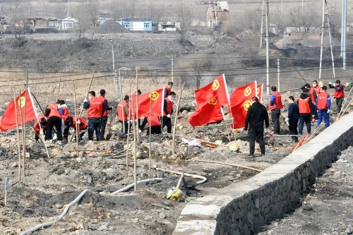 在植树现场,一群身穿红色马夹参加义务植树的矿区青年志愿者吸引了大家的目光。公司团委组织矿区青年志愿者在这里开展“为矿山增绿色,为团旗添新彩”义务植树志愿服务活动,矿区青年志愿者相互配合,有的人负责挖树坑,有的人负责栽树苗,干得热火朝天,充分展示了公司广大团员青年“奉献、友爱、互助、进步”的志愿服务精神和良好形象,不仅为绿色矿山建设做出了积极贡献,还增强了公司广大团员青年植绿、护绿、爱绿的意识。“人多力量大!我们用一个多小时就栽种了200多棵柳树,很有成就感,相信这些树木能长得很好,用行动为建设绿色矿山和我市创建国家森林城市尽一份力、为美丽家园再添新绿。”矿区青年志愿者、新兴矿西六采区政工干事杨利伟说。参加义务植树活动的公司机关部室、直属单位和社保管理中心、救护大队职工认识到团队协作的重要性,表示要为矿区更美更绿做出贡献。据统计,参加此次义务植树活动的公司机关部室、直属单位和社保管理中心、救护大队职工共栽种了杨树苗、柳树苗2600棵,以实际行动为建设绿色矿山和我市创建国家森林城市再添新绿,展现出了国企担当精神和朝气蓬勃、不畏辛苦、奋发进取的良好精神风貌。种下绿色,种下未来。公司机关部室、直属单位和社保管理中心、救护大队职工亲手种下了一棵棵充满希望的树苗,用实际行动为建设绿色矿山和我市创建国家森林城市播种下绿色的种子,传播了生态文明理念,种出了属于全市的绿水青山和金山银山,绘出了绿色矿山的新画卷。(摄影:孙国祥)