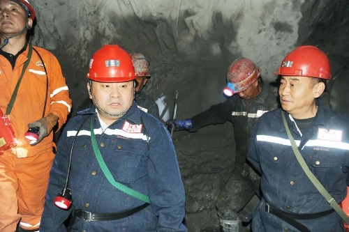 鞠超要求福泰来煤炭公司要加强巷道顶板管理,加大巷道支护力度,狠抓现场管理,备齐支护材料和工具,重点在提高巷道支护质量上下功夫,严格落实标准,精细施工锚杆,保证支护到位,确保安全作业。(摄影:张国伟)