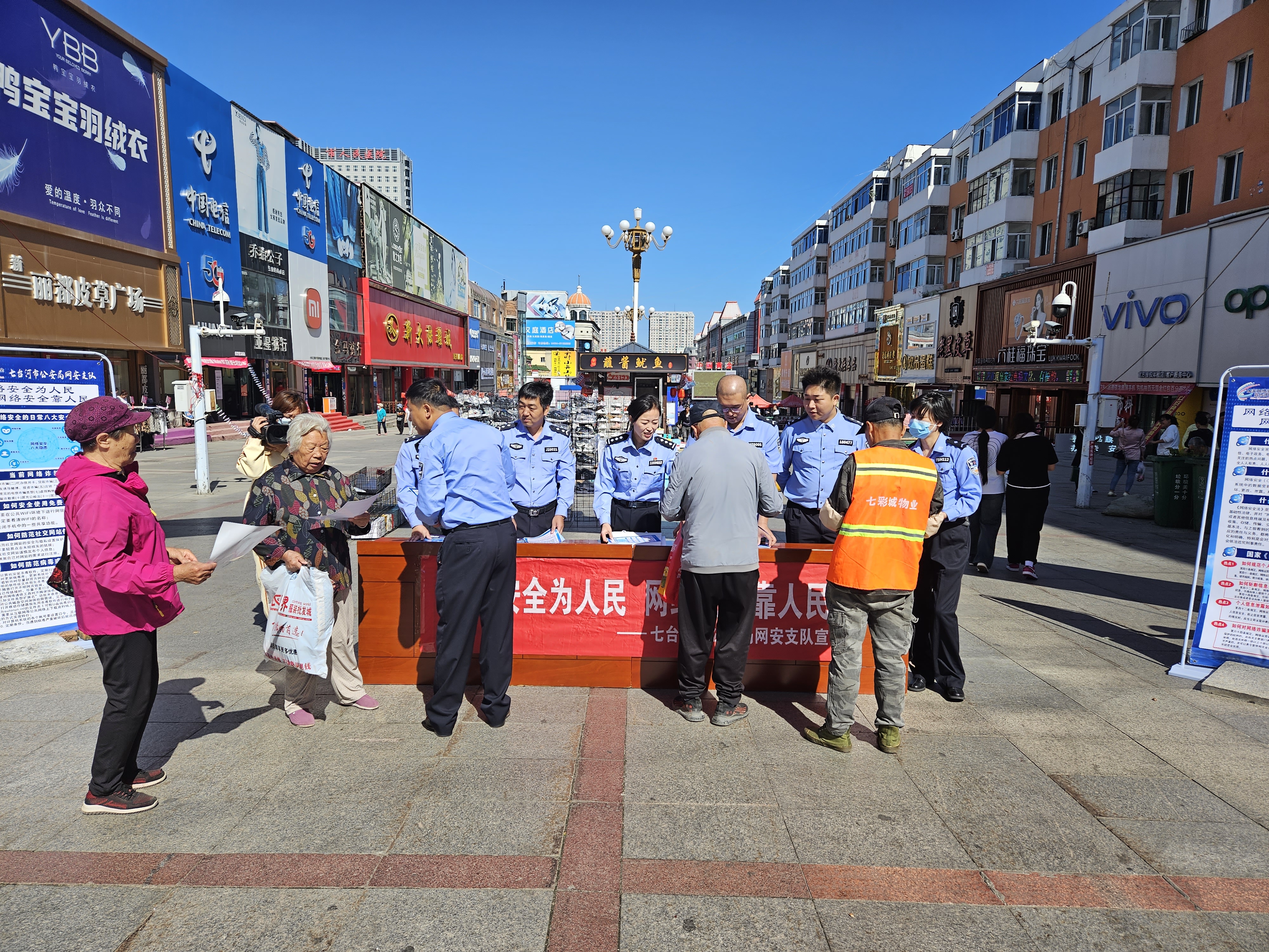 日期:2023-09-15 来源:市委宣传部 作者:市委宣传部为进一步增强人民群众的网络安全意识和自我防范能力,9月14日,市公安局网安部门深入步行街、公园、商场及网吧等地开展了以“网络安全为人民、网络安全靠人民”为主题的国家网络安全宣传周活动。