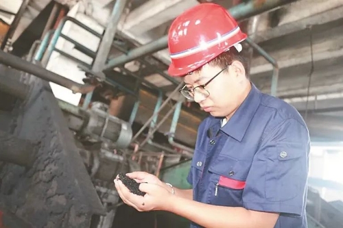 新入职大学生认真细致观察煤质灰分。