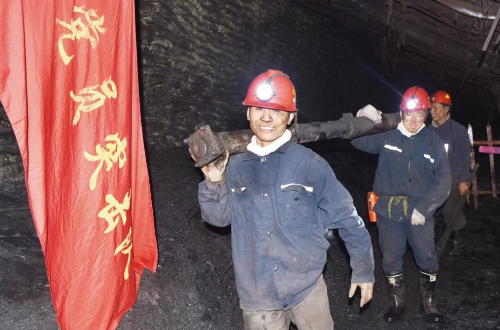 新兴煤矿西六采区党员参加清理综采支架会战活动。杨利伟摄