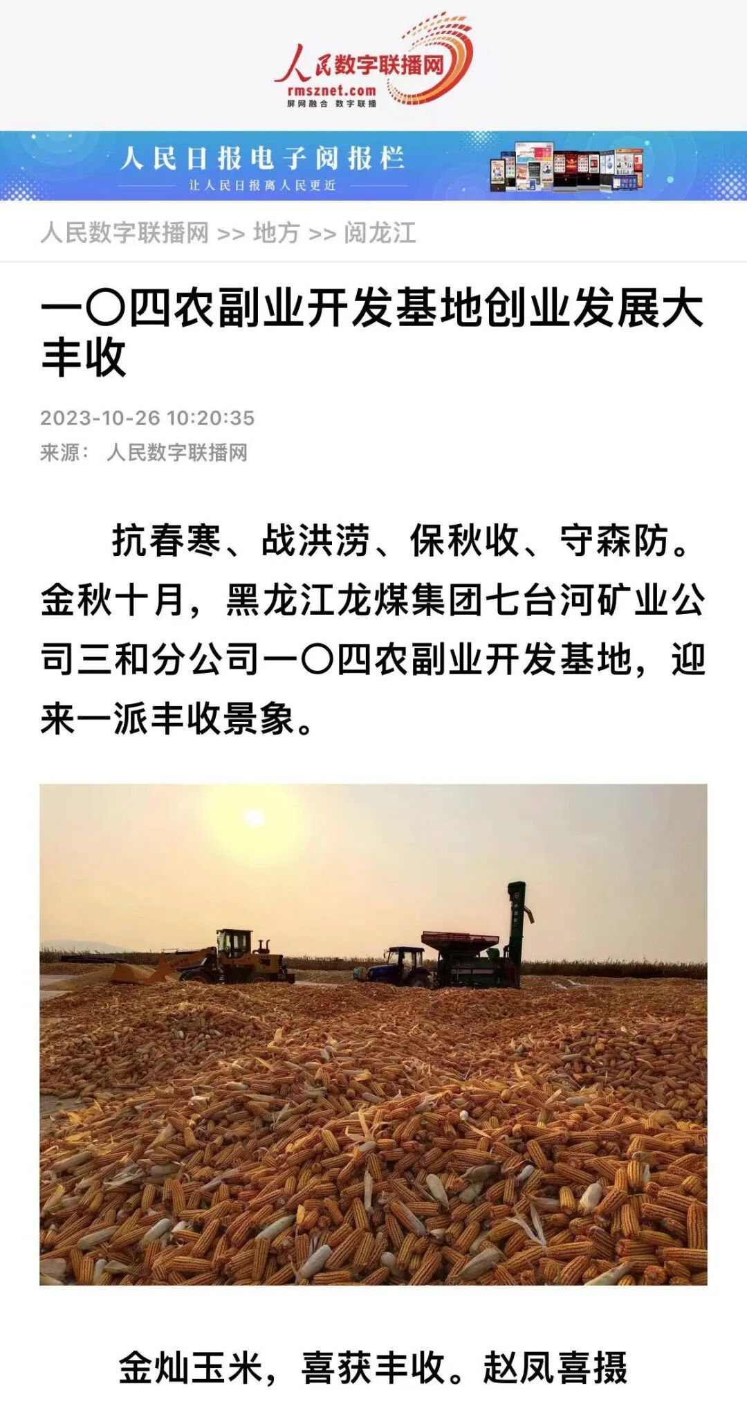 2023年10月26日《人民数字联播网》对我公司一〇四农副业开发基地进行了报道。