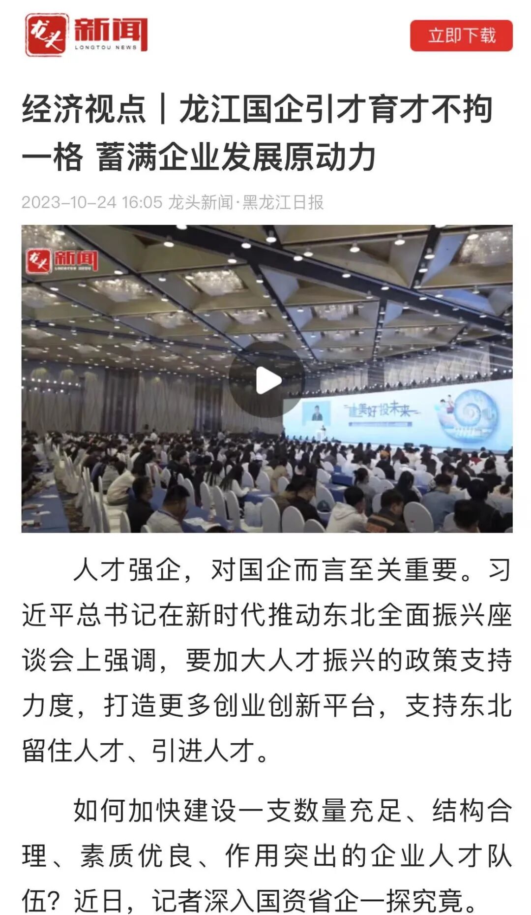 经济视点|龙江国企引才育才不拘一格 蓄满企业发展原动力
