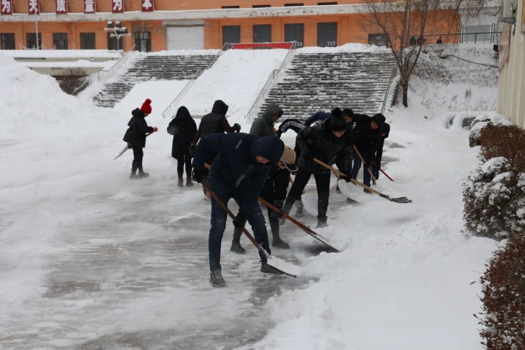 11月6日,桃选厂组织厂两级机关人员清理厂区内积雪,避免大雪天气造成积雪现象,保证全厂正常生产生活不受影响,为安全生产创造畅通的安全环境。
