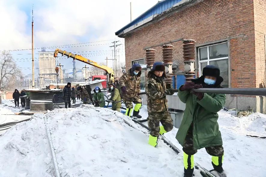 电力部供电部副主任王浩告诉记者:“第一批人员仅用十多分钟就来到新立变电所。电力故障抢修大部分在室外,严寒低温天气,电缆都冻得僵硬,拖拽电缆难度非常大,但是参战人员无一人喊苦叫累、无一人退缩。”