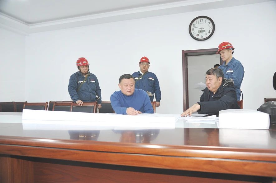 王戈对照公司所属煤矿采掘工程图详细了解了煤层赋存、采掘布局、系统建设等情况及需要公司帮助协调解决的问题。他指出,煤矿安全生产是一项系统性、复杂性工作,各级干部要以系统性思维考虑问题,认真谋划矿井采掘工作面布置、系统建设和“一优三减”工作,科学制定最优方案,切实解决制约和影响安全生产的瓶颈问题,努力提升矿井系统保障能力,推动企业安全发展。