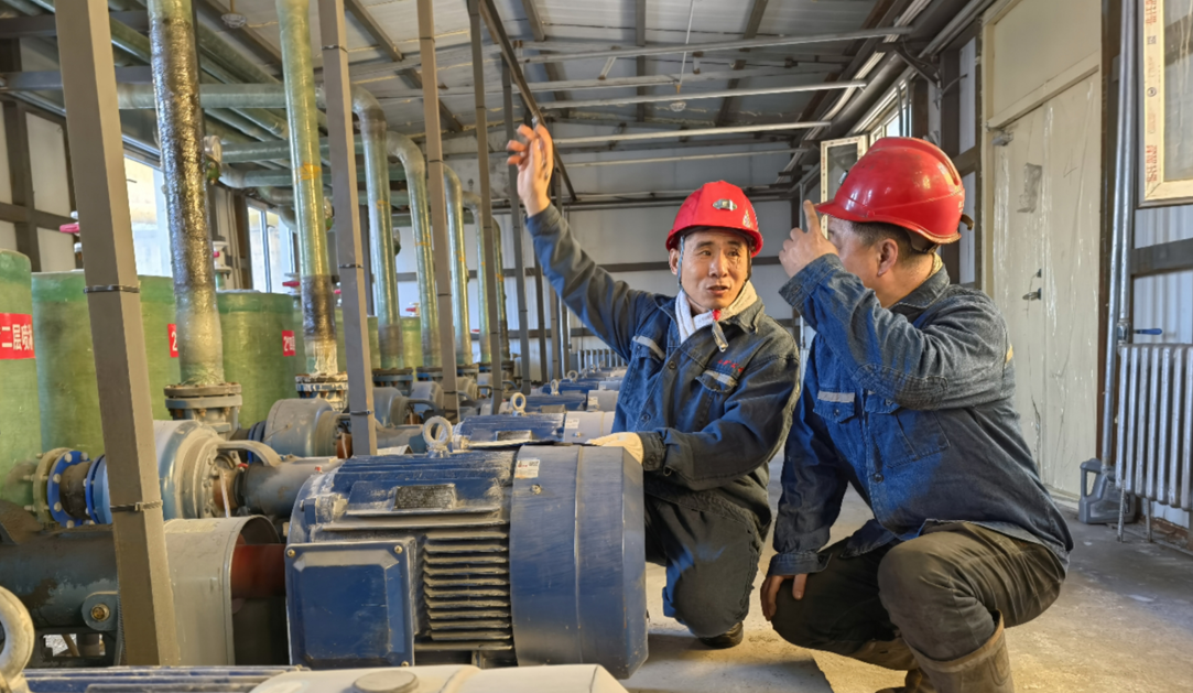 杨会军(左)在调研矿井水治理。耿闻 摄