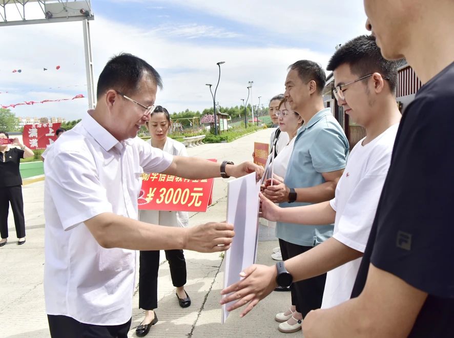 李信国教育基金会会长、公司实业发展中心主任栾兆和颁发李信国教育基金奖学金。