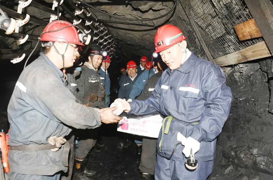 王佳喜检查了龙湖矿矿井主井井筒装备对接工程施工现场安全管理和井下7752掘进工作面现场管理、瓦斯治理、安全生产标准化管理体系建设等工作,详细了解了国庆节期间安全措施落实、煤质管理和矿井煤炭储量等情况,代表集团公司党委、集团公司向奋战在一线的职工致以节日的慰问,为他们送去了象征平安幸福的苹果。王佳喜说:“祝你们国庆节快乐,要保持身体健康,严格兑规作业,保证安全生产。”