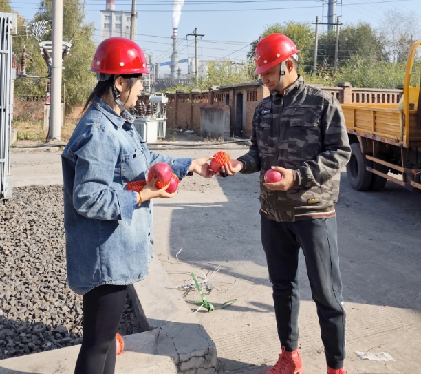 在新立变动力电缆改造及电动丙刀闸安装作业现场,电力部工会人员将苹果、橘子、南果梨等慰问品送到职工手中,详细询问工程进展、作业时间安排等情况,叮嘱职工严格兑规作业,做好自身防护,确保安全作业。(摄影:徐鹏九)