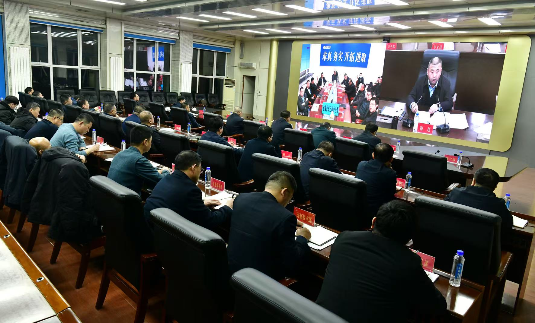公司基层单位副总师以上领导、井科级负责人、党支部书记和公司安全监察局驻矿站长、公司机关部室负责人分别在主会场、分会场参加了会议。(摄影:袁晓松)
