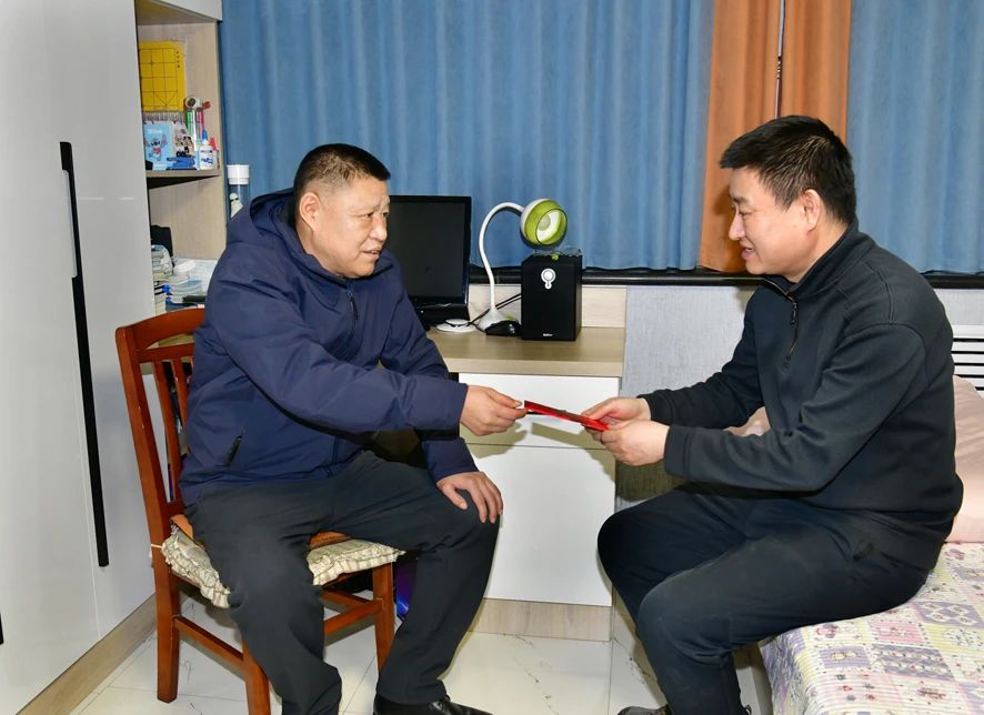在王春家中,杨卫东仔细地询问了他的身体、家庭生活、工作等情况,向王春和家人致以新春的祝福。杨卫东说:“新春佳节即将来临,我代表公司党委、公司来看望慰问你,向你和你的家人致以节日的问候和新春的祝福,祝福你们新春快乐、身体健康、阖家幸福。”