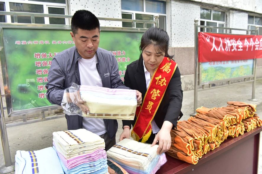 “今年安全生产月活动的主题是什么?”、“‘三违’行为有什么?”、“正确佩戴自救器的步骤是什么?”在新兴矿立井综合办公楼前,矿区工会工作人员和职工家属安全协管员组织升入井的职工学习安全知识,开展安全签名和安全知识有奖问答活动,发放毛巾、手套、肥皂和洗洁精等慰问品,现场进行自救器30秒盲戴演练,在潜移默化中向参加活动的职工灌输安全理念,提高了防范安全风险、安全应急意识和自救互救能力。他们充分发挥职工家属在家庭中的情感优势,用妻子情、婆婆嘴当好安全宣传员和“三违”帮教员,用亲情筑牢了安全生产防线。