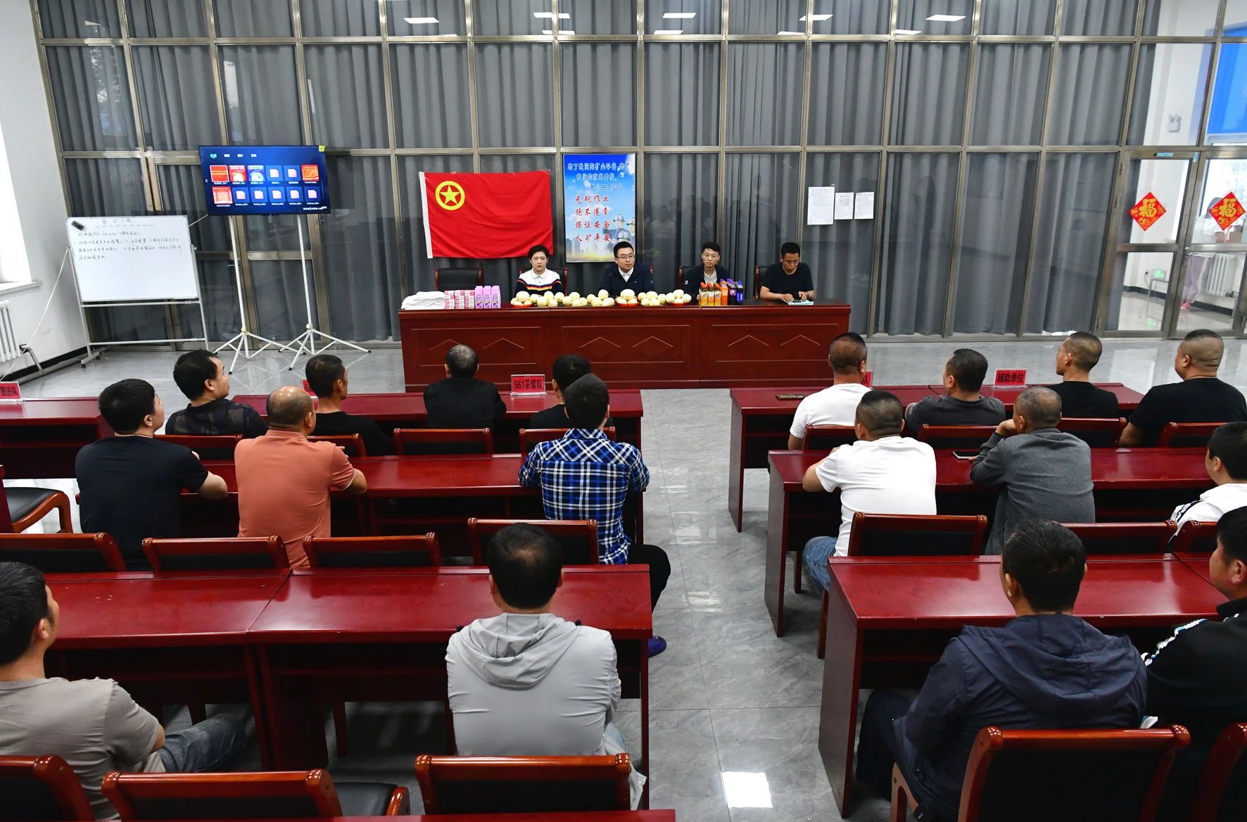 班前课结束后,公司青年志愿者为即将入井的职工表演了《无名的人》《万疆》等节目,丰富了职工的文化生活,营造了浓厚的安全氛围。