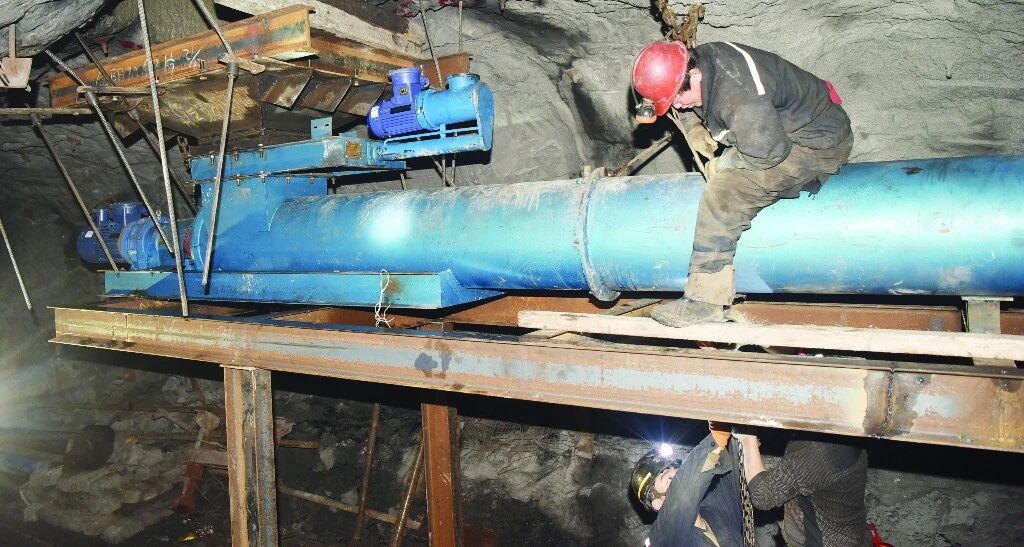 第二个难题是粉尘污染。最初使用干粉煤灰投料,井下巷道粉尘飞扬,工人的作业环境极差。经过多次井下技术改造,效果始终不理想。