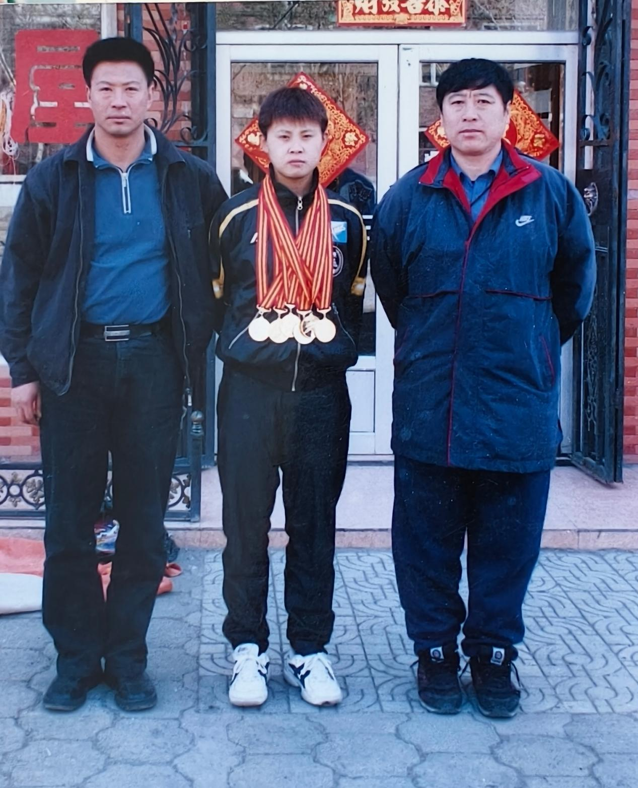 孟庆余(右)和弟子冬奥冠军王濛及弟子马庆忠教练在一起。耿闻摄影