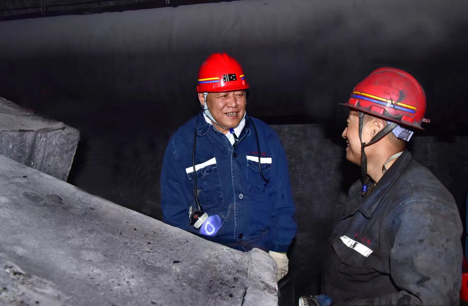 检查途中,杨卫东还对安装综采工作面远距离供电供液装置和更换综掘机配件等工作提出了具体要求。(摄影:袁晓松)